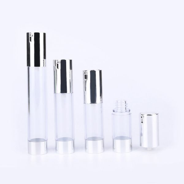 Pearly 10ml 15ml 20ml 30ml silver plastic plating cap less slide nozzle factory price airless pump bottle