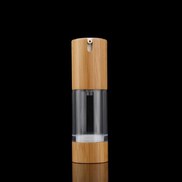 Eco-friendly 30ml 50ml transparent plastic AS with bamboo head bottom PP cap-less airless pump bottle